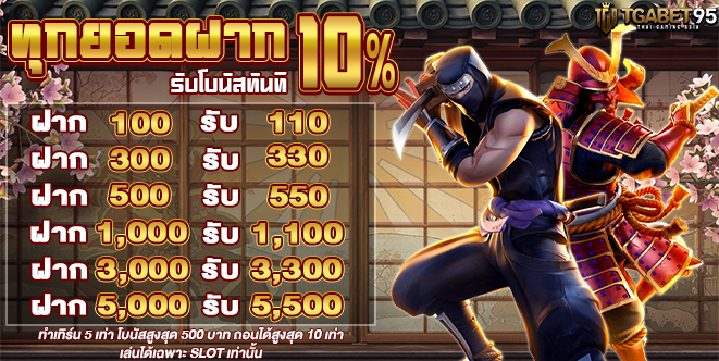 โปรทุกยอดฝาก รับเพิ่ม 10% พิเศษสำหรับลูกค้า TGABET95 ที่ทางทีมงาน
